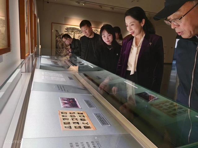 随后,张捷一行前往安徽省美术馆观看“回望青山写真意——朱修立艺术展”。此次展览策展人、2017届校友江元晨向大家作了生动详实的讲解。