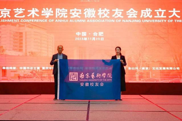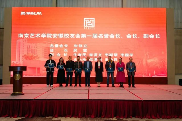 下午三时,南京艺术学院安徽校友会成立大会在合肥中国书法大厦举行。安徽省人民政府原副秘书长余焰炉,南艺校友、安徽省文联原主席、安徽省书法家协会主席吴雪,南艺副校长张捷,中央美术学院安徽校友会会长、安徽省文联原副主席、第六届安徽省美术家协会主席杨国新,南艺发展办主任张勇,北京大学安徽校友会副会长陆发春,中央美术学院安徽校友会联络处秘书长许凯明,北京大学安徽校友会执行秘书长蒋正涛以及南艺安徽籍校友代表出席此次大会。会议由南艺2016届电影电视学院校友、安徽艺术学院继续教育学院教学管理部主任阚侃主持。